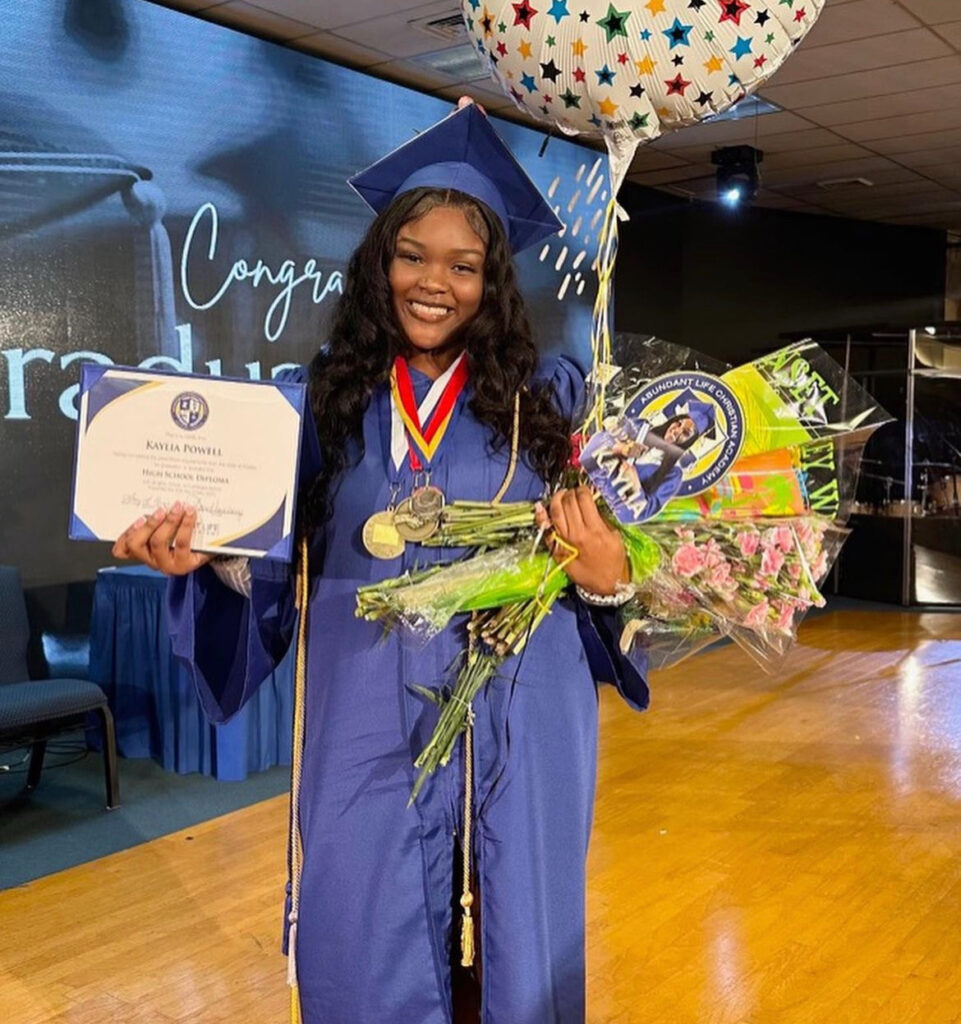 Kaylia graduated first in her class in May from Abundant Life Christian Academy.